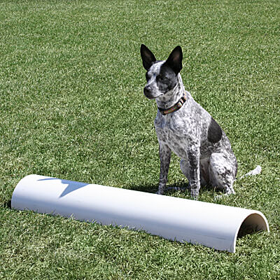 These jump bumps are made by Max 200 from heavy-duty Schedule 40 PVC so that they will hold up even in colder climates. They are 4". The size refers to the width of the jump bump, not the height. Susan uses both sizes for younger dogs because she wants even the smallest of puppies to understand that some jumping tasks are bigger than others. Each jump bump is 40" long.