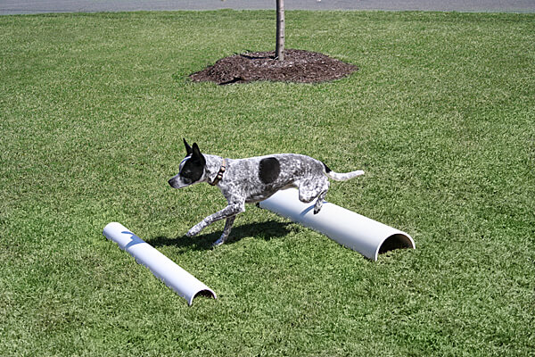 Jumps bumps, also known as "speed bumps" and "stride regulators," were developed by Susan Salo and are used as part of her puppy jumping program and jumping foundation program. They are also used for problem solving in more advanced jumping work.