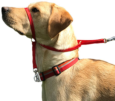 Important: The K9 Bridle is used in conjunction with a flat buckle collar. As a safety device, there is a strap under the chin. Should the unthinkable happen and your dog manages to get the bridle off, you are still attached to your dog as shown in our product video.