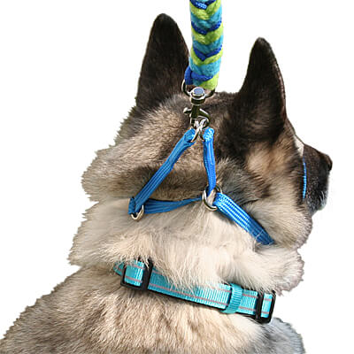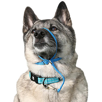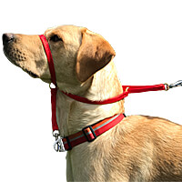 Do not confuse the K9 Bridle with other training halters that are available. We're sure that you have seen dogs wearing the ones that go into the dogs' eyes, interfere with their mouth, and look like muzzles. But an even bigger problem with these head halters is that the point of control is under the chin, so tension on the leash twists the dog's head to the side. This can cause vertebral damage and the dog also learns that he can still pull if he tilts his head to the side.