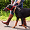 The K9 Bridle stops pulling. It works from the back of the neck, exactly where you need to have control, on a principle similar to a bit-less bridle for horses—if that will stop a horse, it can also stop a dog. When the lead is tightened, pressure is applied to the front of the dog's face and tells the dog to not to pull. The dog easily understands this clear and precise signal. He soon learns that when he moves forward from the heel or close position the bridle applies slight pressure and reminds him where he should be. Force is not required, and it should be avoided! The goal of this tool is effortless control. No strength is required by the handler, making it ideal for people with disabilities. This is the next generation of training halters offering total effortless control.