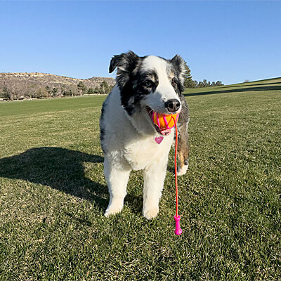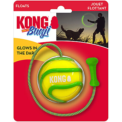The Kong High-Viz Bunji Ball is specially designed with bright, high visibility colors for various environments, weather, and terrain. Ideal for fetch-and-retrieve play, the ball has raised ridges that create an unpredictable bounce and an ergonomic bungee cord rope that effortlessly launches long distance, saving your shoulder from burnout! The glow-in-the-dark ball and handle make this toy perfect for playing after the sun goes down and on gloomy days—and it even floats in water!