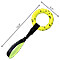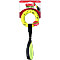 This ring is attached to a bungee handle for dynamic tugging and the toy floats for water play.