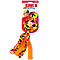 The head contains a 2" firm ball and the body contains a 3" squeaky ball. The overall length of the toy is 13".