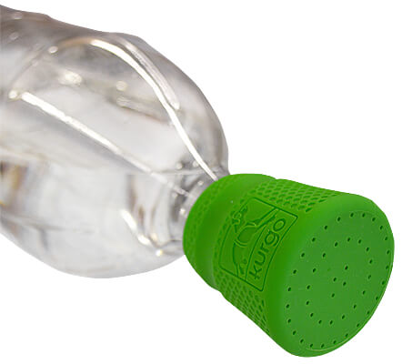 The Mud Dog Travel Shower simply screws onto any standard PET soda or water bottle from 16 oz. to 2 liters. If you use a 2-liter bottle, shower time is over a minute long. The Mud Dog Travel Shower is made of dishwasher-safe, food-grade silicone so it's PVC-free and BPA-free.