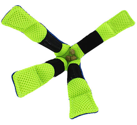 The Lotus Ball is one of our most popular treat-dispensing toys, but not all dogs like Velcro. So we developed the Lily in conjunction with Rachel Evers, an agility instructor in California.