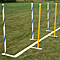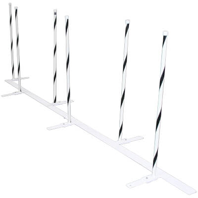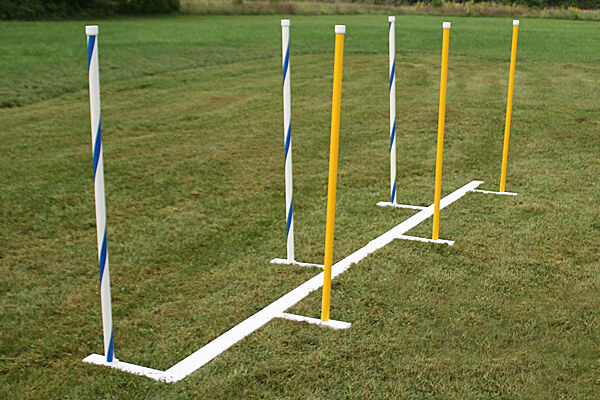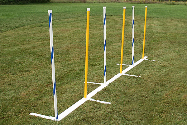 This weave pole base has 6 weave poles that slide back and forth to create a "channel" for teaching your dog to weave. The width of the channel is gradually decreased over time until the dog is weaving poles in a straight line.