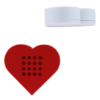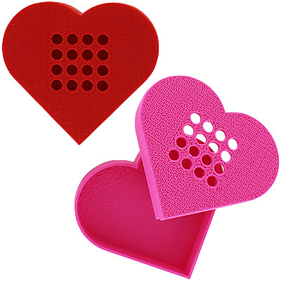 We're feeling the love in the air for nose work so we decided to do a heart-shaped version of our popular Food Distraction Container. We printed each one with a textured finish so it looks and feels like a bit like a wood jewelry box. Just pull the two halves apart and load it with your distraction odor. There are 16 holes in the lid.