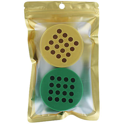 Our special holiday gift pack contains your choice of a red and gold or a green and gold Food Distraction Container in a smell-proof food-safe Mylar bag. The bag seals tight with a ziplock closure that keeps moisture out and odors in.