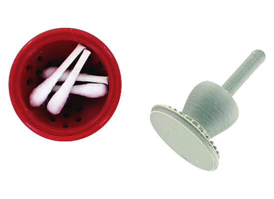• You can leave Q-tips in the vessel for short periods, but don't store them in the vessel for long periods. Essential oils react to ALL surfaces they come in contact with which can cause training problems because the reaction changes how the odor smells. Periodically change your Q-tips and clean the vessel.