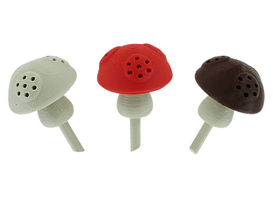 The stem of all the mushrooms is tan, but you can choose from 3 different cap colors: tan to match, brown, or red.