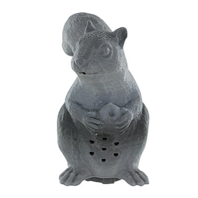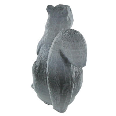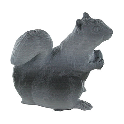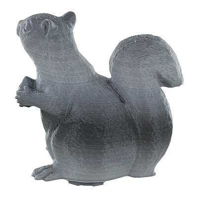 We 3-D print these squirrels using rainbow filament. It's called "rainbow" because there are different colors and gradients of these colors running throughout the filament so that no two squirrels look exactly the same. The Grey Squirrel has a mix of light greys and dark greys, and the Red Squirrel has a mix of burgundy, walnut, ebony.