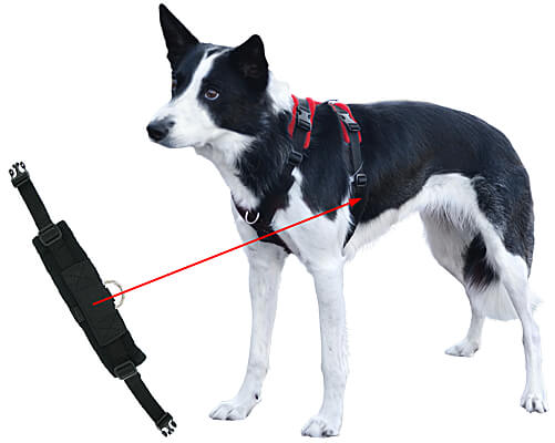 IMPORTANT! There is a D-ring on the front piece so that you can use a double-connection leash, and have two points of connection, to improve "steering" and distribute any pulling force more evenly. Please note that the harness is NOT designed for the front D-ring to be used on its own; ONLY use the front ring only with a double-connection leash.