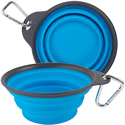 These collapsible food and water Travel Cups are perfect for the active dog! Use the carabiner that's included to latch a collapsed Popware Travel Cup onto a belt loop, backpack, leash handle, or crate, and then just pop up the bowl to expand it when your dog gets thirsty or hungry. These Travel Cups collapse to less than 1/2" thick and are more durable than other collapsible bowls on the market. Collapse the Popware Travel Cup and put it in the dishwasher for a thorough cleaning.