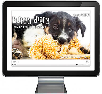 Puppy Diary explains how Silvia chooses her puppies, their breeders and lines, and shows. It covers To's first 5 months, explaining over 30 different tricks she learned in her first 3 months with Silvia. The DVD shows them from the first steps on and gives insights into the games, exercises, and all of the other things that Silvia finds most important for growing puppies.