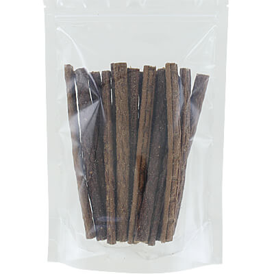 These round strips are 6.5" long and 3/8" wide and break up easily. They contain only 2 ingredients and are made in the USA in a factory that makes food products for humans. The kangaroo is sustainably sourced from Australia. The owner of Scout and Zoe's says, "So safe, I eat them!"