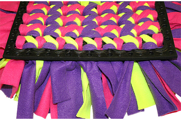 There are a million ways to use a Snuffle Mat in your training, and all of them will make your dog happy! Manufactured in the USA, these Snuffle Mats are not like the rest—they are made with over 30% more high-quality fleece strips. For the Mini Travel Size Snuffle Mat, the strips are double-knotted on a 4"W x 4"L x 3/8" thick, heavy-duty commercial mat for a finished size of approximately 6"W x 6"L x 3"H. It weighs 6 oz.