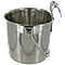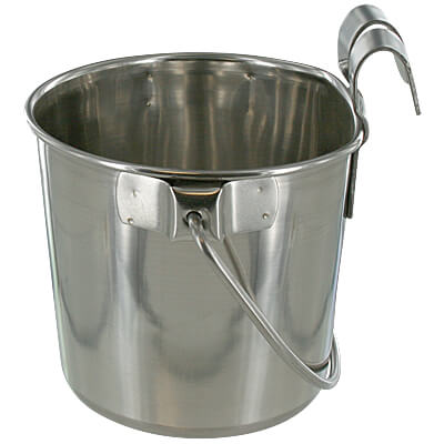 The smart design of these heavy-duty stainless steel pails features a flat side so they can sit flush against flat surfaces. This allows you to hang the pail on a fence, ex-pen, crate, or kennel, and it will lay flat without rolling or tipping. Use the welded hooks to hang the pail or hang it by the handle.