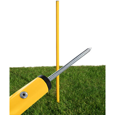 The only way for your dog to become proficient at weaving is practice! Train weaving at home with these high-quality, easy-to-use stick-in-the-ground weave poles! The poles are made from UV-protected yellow plastic pipe. They are 1" in diameter and 36" long, and there's a 5/16" diameter x 5" long steel spike at the end of each pole.