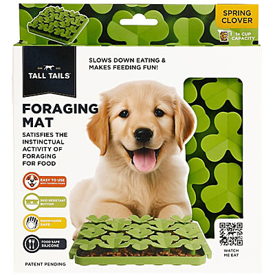 The Tall Tails Foraging Mat is a silicone slow feeder for dogs, encouraging slower eating for better digestion. It's easy to use with your dog's favorite foods like kibble, wet food, spreadables, and treats. There's even a skid-resistant bottom with suction cups for active eaters who try to push their bowl around. For even more fun, each foraging mat is made with overlapping edges so you can join multiple mats together, either the same design or different ones.