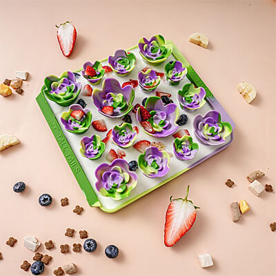 The Tall Tails Foraging Mat is a silicone slow feeder for dogs, encouraging slower eating for better digestion. It's easy to use with your dog's favorite foods like kibble, wet food, spreadables, and treats. There's even a skid-resistant bottom with suction cups for active eaters who try to push their bowl around. For even more fun, each foraging mat is made with overlapping edges so you can join multiple mats together, either the same design or different ones.