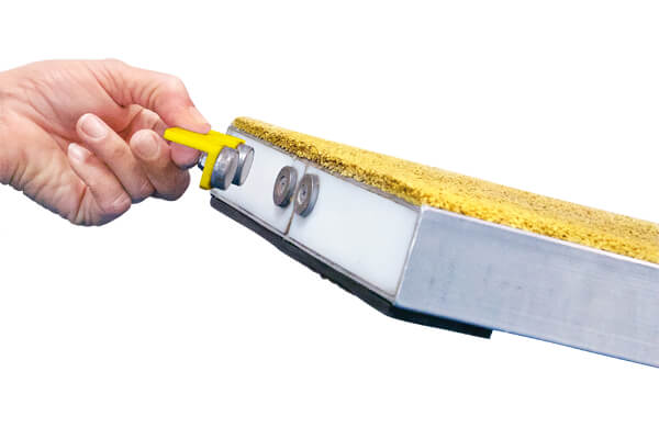 Designed by Wade Robertson, this universal Teeter Treat Plate is a great accessory for helping teach your dog to go all the way to the end of the seesaw plank. It attaches to the plank with Rare Earth neodymium magnets, which are extremely strong. If you have a teeter with a steel frame, then the treat plate can be attached directly. If you have another type of seesaw, then you will need to use the provided screws to attach two washers (also provided) to the end of your board. The magnets on the treat plate will then attach to those.