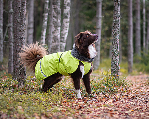 The Toppa Pomppa is the perfect winter coat for cold-sensitive dogs. For dog's with thick fur, we recommend using Toppa Pomppa for calmer walks or for downtime between performances when it's crucial to keep the large muscle groups warm. If your dog has thick fur and is very active outside in the winter, you may want to look at the Perus Pomppa since it doesn't have the added layer of insulation.