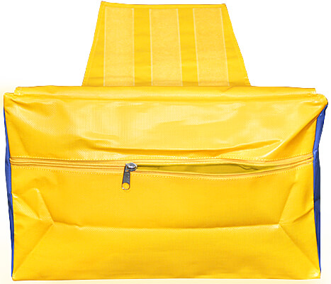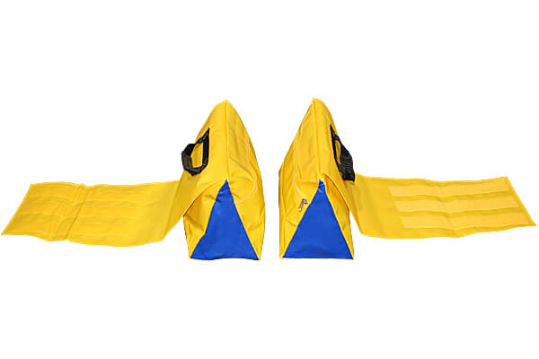 The low-profile, triangular design offers many advantages over traditional tunnel bag because there is a low center of gravity for excellent stability and it allows the bags to slide under the curved sides of the tunnel so the bags act as wedges to prevent movement.
