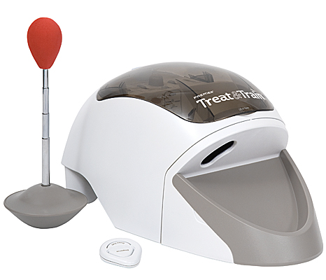 Whether you're a dog owner or a professional trainer, the Treat & Train Remote Dog Trainer (formerly called the MannersMinder) can dramatically increase the speed, precision, and effectiveness of your positive-reinforcement training. Veterinarian and animal behavior expert Dr. Sophia Yin invented the Treat & Train based on behavioral science and how animals really learn. She developed and thoroughly tested it in lab and clinical trials. The result is a remote-controlled reward dispenser and training system that allow you to efficiently teach dogs at a distance (or nearby) to perform almost any behavior, from everyday skills (such as potty training) to specialized skills (such as those used in agility, obedience, service, and military work).