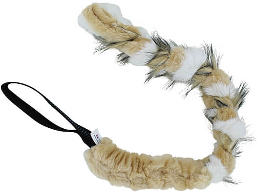 The TugTastic Bungee Tug with Bunny Fur is made with commercial-grade rabbit fur, and the white fur is natural, not bleached or dyed. NO rabbit fur from China is used.