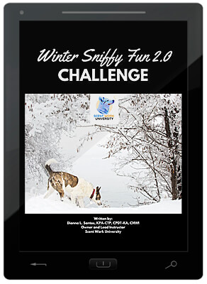 This E-Book is a compilation of the weekly challenges that were posted to the Friends of Scent Work University Facebook Group from December 14, 2021 - March 31, 2022. The challenges will give you some creative ways to battle those winter blues.