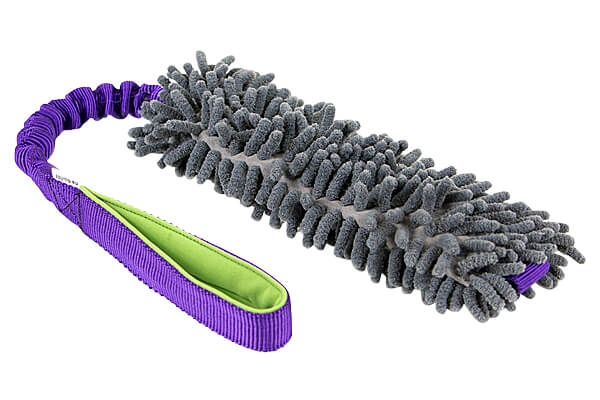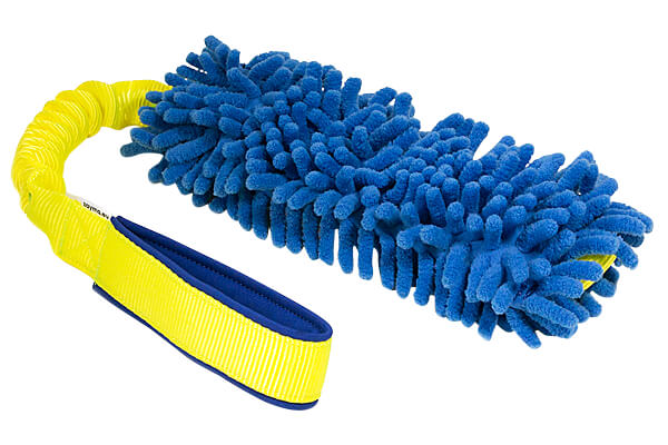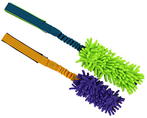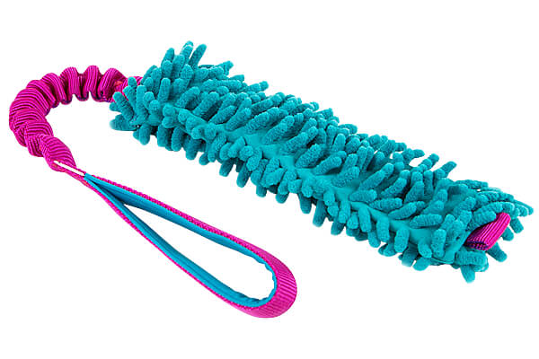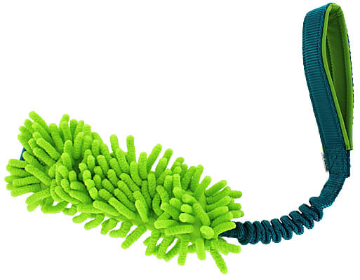 The Zayma Bungee Mop Tug is made with a unique microfiber material that dogs find very attractive and the nylon handle is lined with durable, easy to clean softshell. The bungee acts as a shock absorber to make tugging easier on your body while at the same time increasing tugging excitment for your dog.