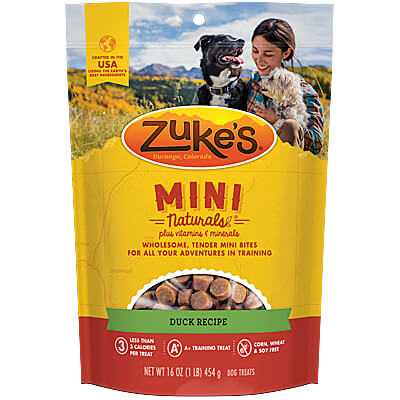 Training is one of the biggest adventures you and your dog will set off on together. And with the right treat, you can keep each and every moment healthy and deliciously fun. At less than 3 calories per treat, Zuke's Mini Naturals are the perfect little size to fit every trainable moment that pops up. These tasty, tender morsels are specially crafted in the USA using the earth's best ingredients—like protein-rich meat, wholefood berries, savory herbs and NO corn, wheat or soy.